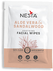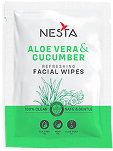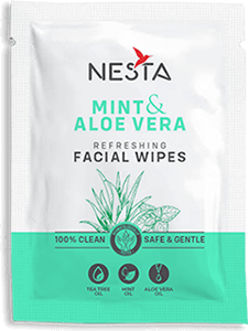 Nesta Refreshing Mint and Aloe vera Facial Wipes Gently cleanses,reenergises and leaves a cooling effect on face. Tea Tree Oil and Aloe Vera Oil are well known for their antimicrobial properties,prevents acne and irritation.Mint Oil is known for natural cleansing properties and leaves a cooling effect.