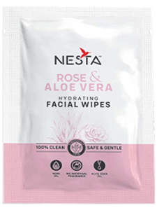 Nesta Hydrating Rose and Aloe Vera Facial Wipes gently cleanses and moisturizes your skin & refreshes in seconds. Aloe Vera is well known for its antimicrobial properties, prevents acne and irritation. Rose oil heals your skin, helps in balancing moisture, relieving stress and promoting circulation.